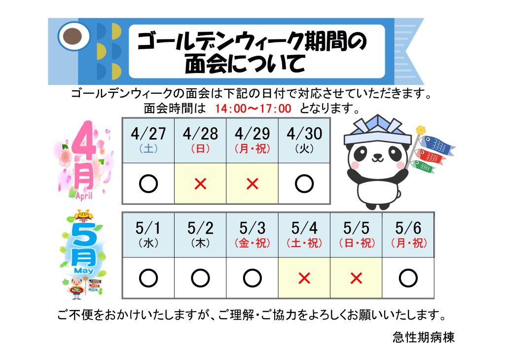 ゴールデンウィーク中のご面会について(急性期病棟)